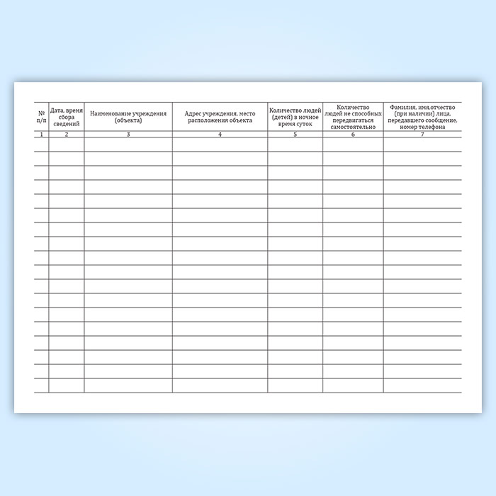 Журнал учета людей, находящихся в детских, медицинских организациях и на охраняемых объектах в ночное время