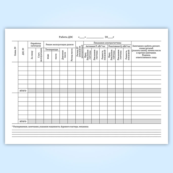 Журнал учета работы ДЭС, наработки и расхода ГСМ