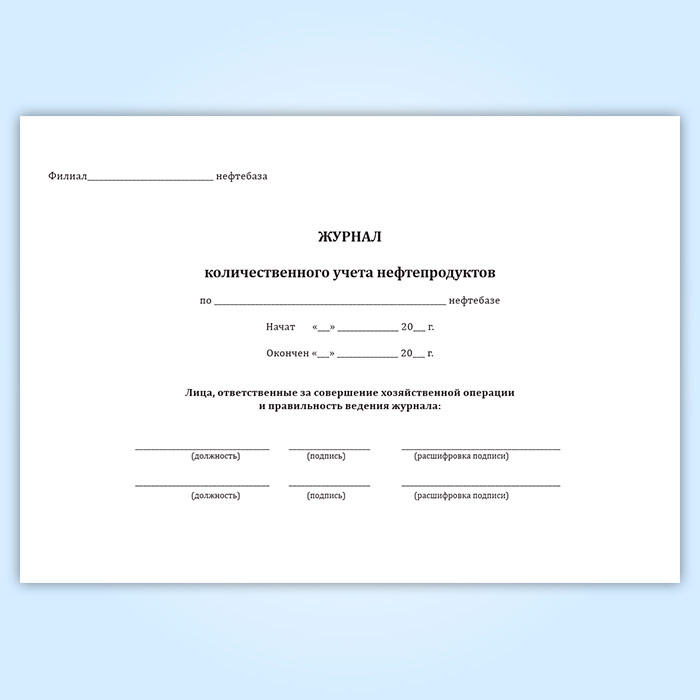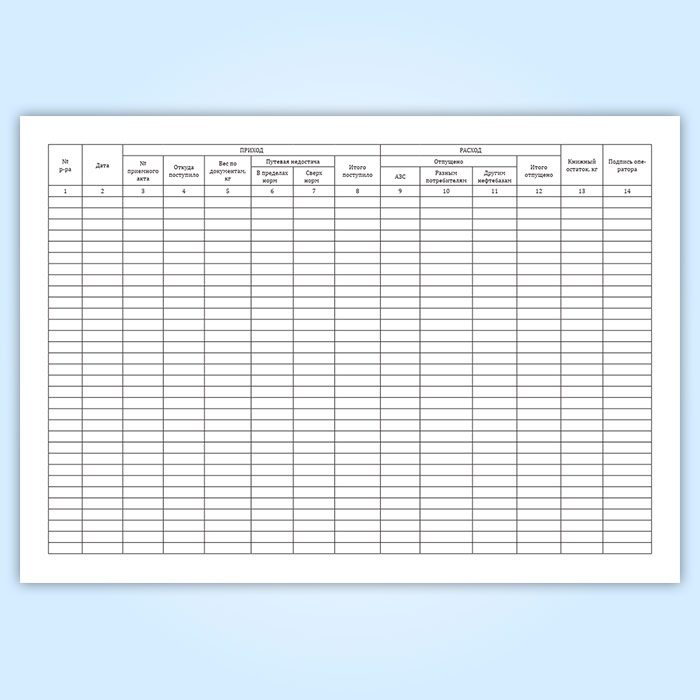 Количественный учет нефтепродуктов ведется в журнале, в котором фиксируют дату и № приемного акта.