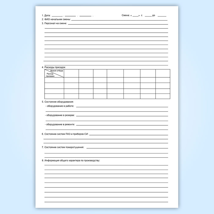 Журнал рапортов начальников смен товарно-сырьевого производства