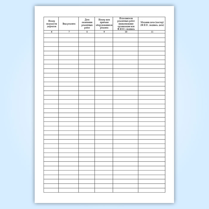 Ремонтный журнал (ремонтно-механическая мастерская) имеет графы: