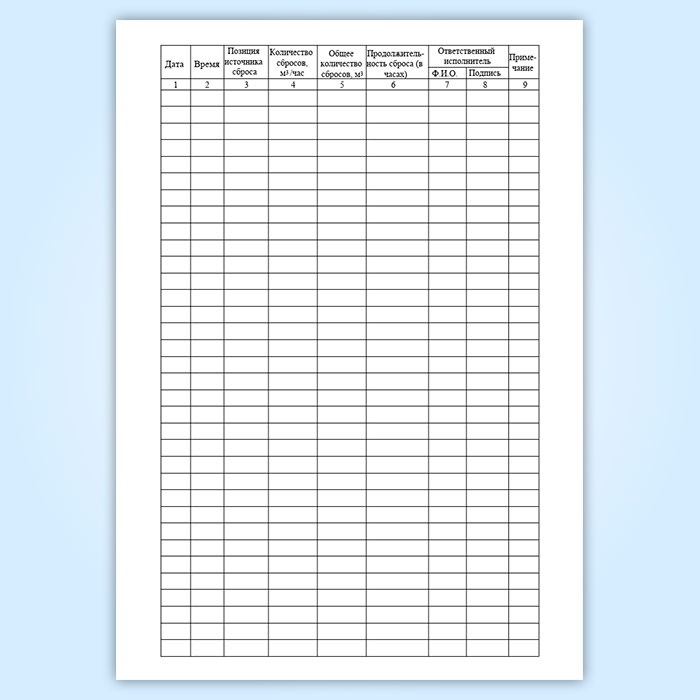 Журнал учета факельных сбросов имеет графы: