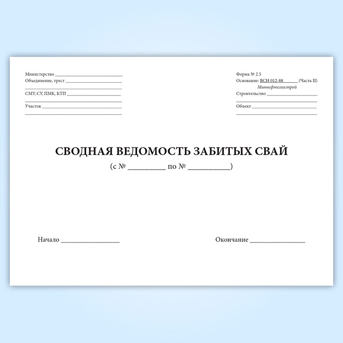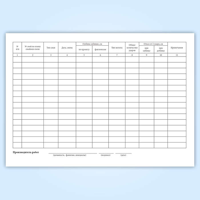 См. также Бланк " Сводная ведомость забитых свай (Форма 2.5)"