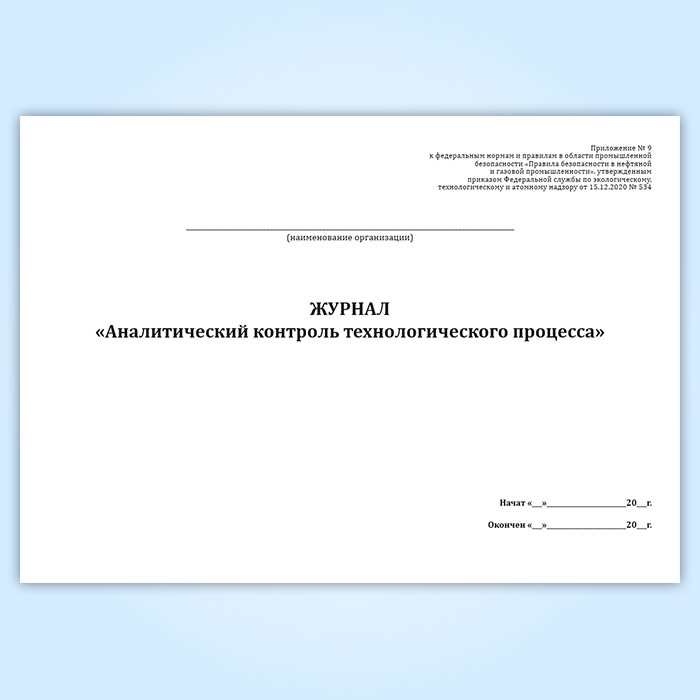Форма журнала соответствует Приложению N 9 к федеральным нормам и правилам в области промышленной безопасности " Правила безопасности в нефтяной и газовой промышленности" , утвержденным приказом Федеральной службы по экологическому, технологическому и атомному надзору от 15.12.2020 N 534