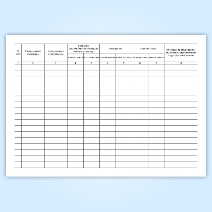 Журнал "Перечень блокировок и сигнализации" имеет графы: