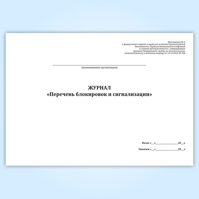 Форма журнала соответствует Приложению N 9 к федеральным нормам и правилам в области промышленной безопасности "Правила безопасности в нефтяной и газовой промышленности", утвержденным приказом Федеральной службы по экологическому, технологическому и атомному надзору от 15.12.2020 N 534