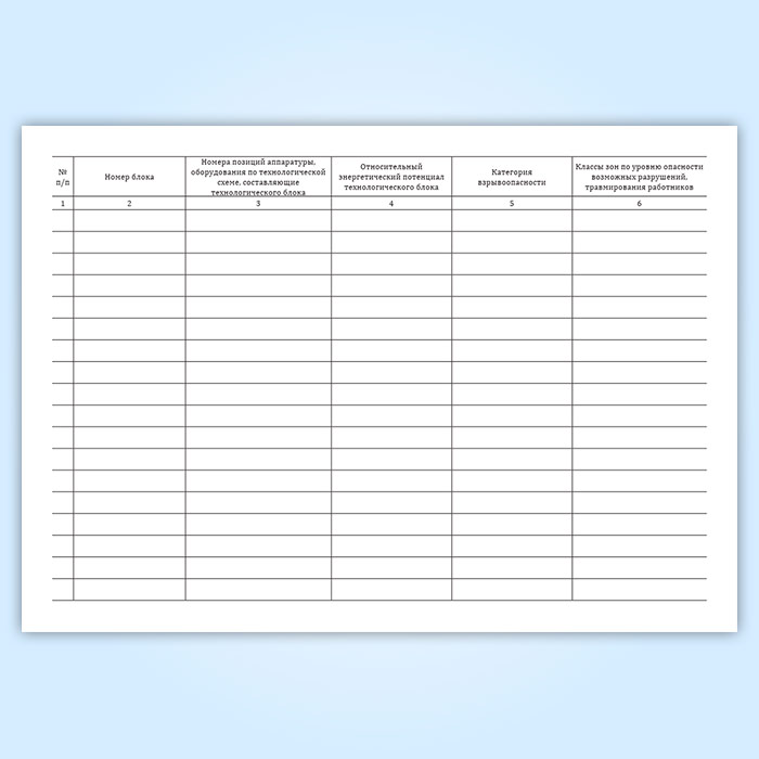 Журнал «Классификация технологических блоков по взрывоопасности»