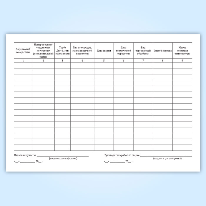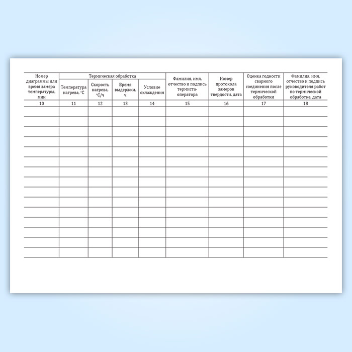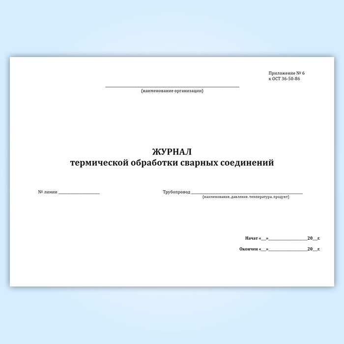 Форма журнала соответствует Приложению 6 к "ОСТ 36-50-86 Трубопроводы стальные технологические. Термическая обработка сварных соединений. Типовой технологический процесс"