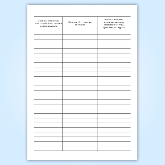 7. Фамилия, инициалы, должность и подпись ответственного лица, проверяющего журнал