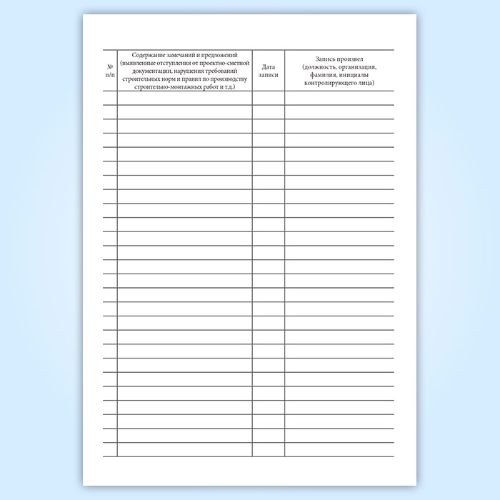 Журнал замечаний и предложений по ведению строительно-монтажных работ