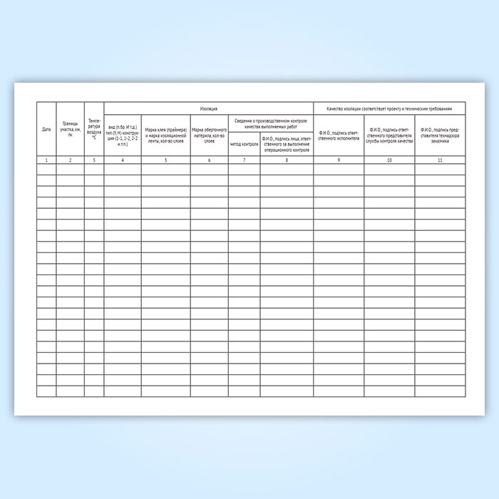 Журнал изоляционно-укладочных работ и ремонта изоляции имеет графы: