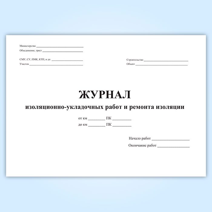 Форма журнала изоляционно-укладочных работ и ремонта изоляции (форма 2.14а) утверджена ВСН 012-88. Строительство магистральных и промысловых трубопроводов. Контроль качества и приемка работ. Часть 2.