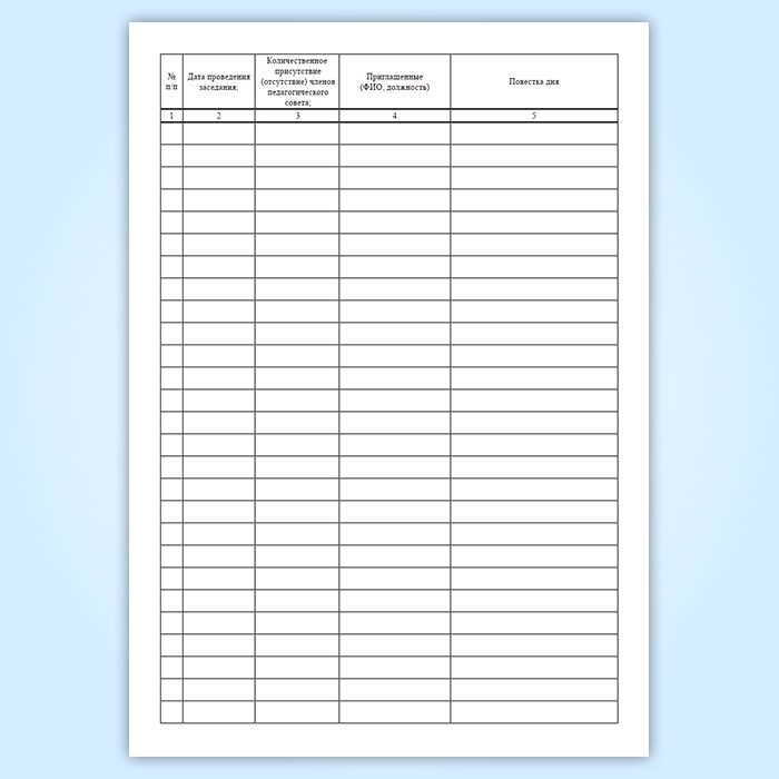 Журнал протоколов педагогических советов имеет графы: