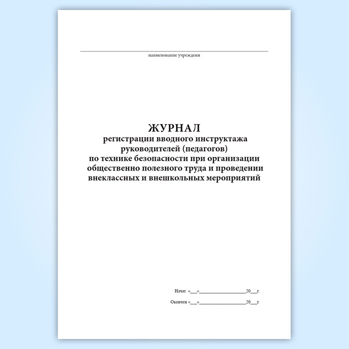 Проведение вводного инструктажа руководителей (педагогов) по технике безопасности при организации общественно полезного труда и проведении внеклассных и внешкольных мероприятий фиксируют в специальном журнале.