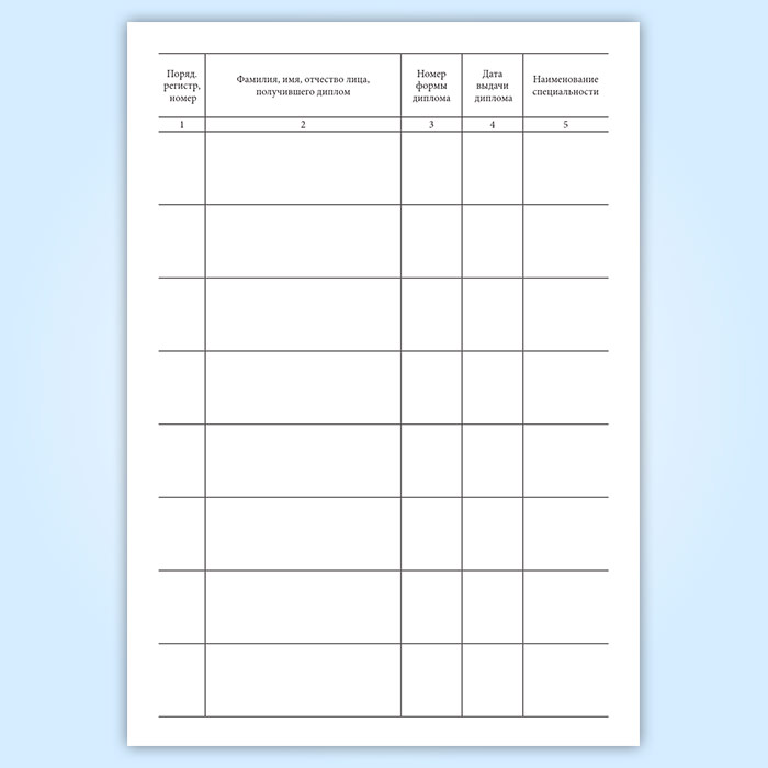 Графы журнала регистрации выдачи дипломов: