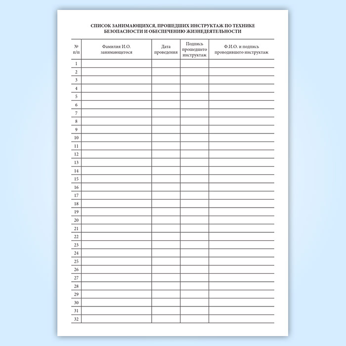 Список занимающихся, прошедших инструктаж по технике безопасности и обеспечению жизнедеятельности