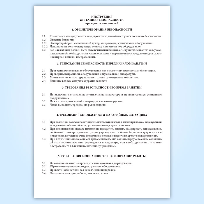 Инструкция по технике безопасности при проведении занятий