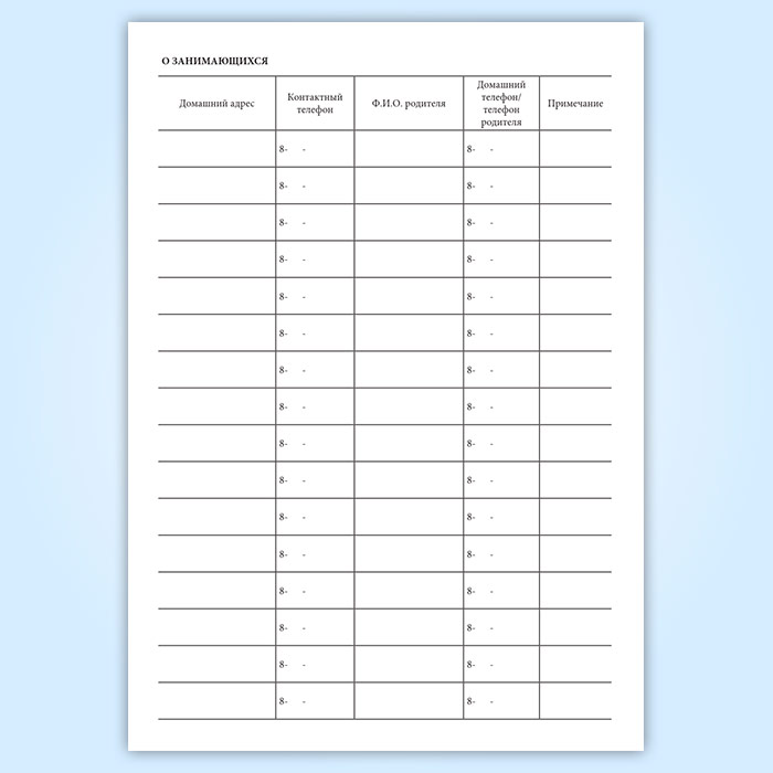 Сведения о занимающихся