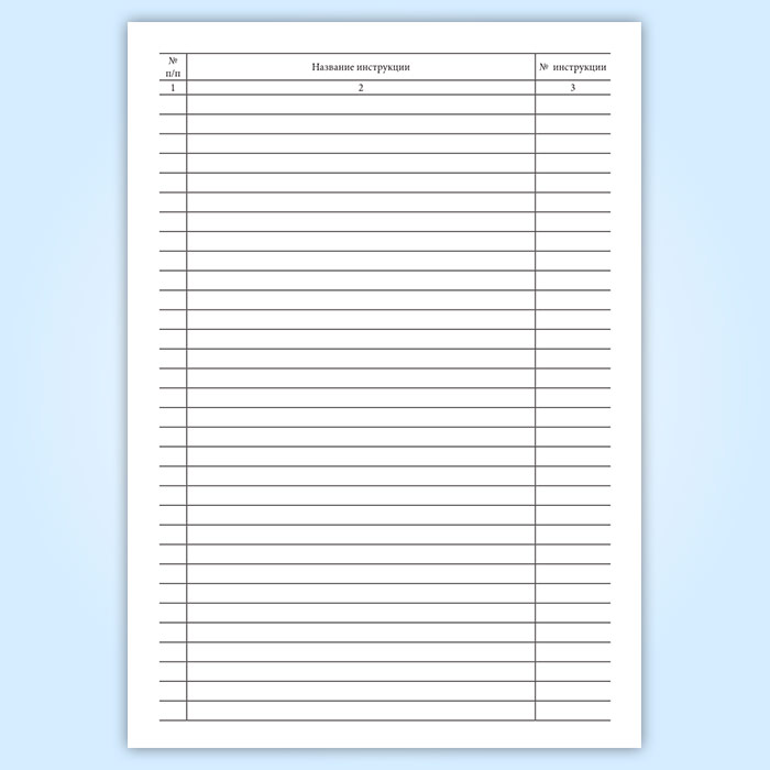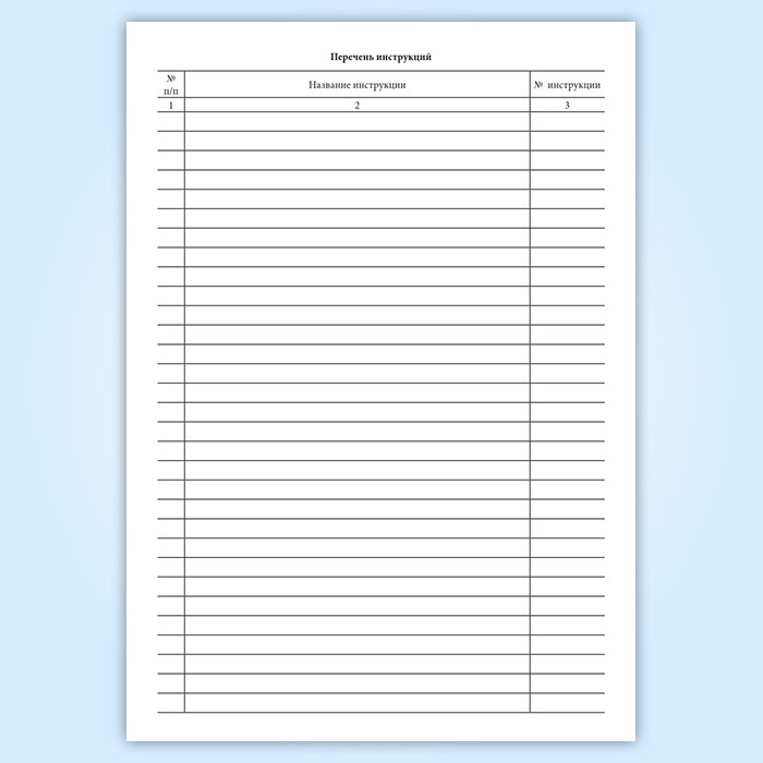 "Перечень инструкций" имеет графы: