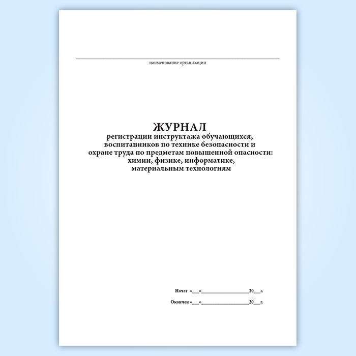 Журнал регистрации инструктажа обучающихся, воспитанников по технике безопасности и охране труда по предметам повышенной опасности: химии, физике, информатике, материальным технологиям