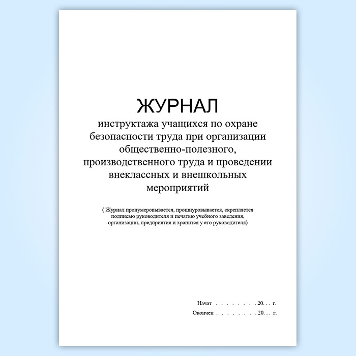 Журнал инструктажа учащихся по охране безопасности труда заполняют в обязательном порядке при организации общественно-полезного, производственного труда и проведении внеклассных и внешкольных мероприятий.