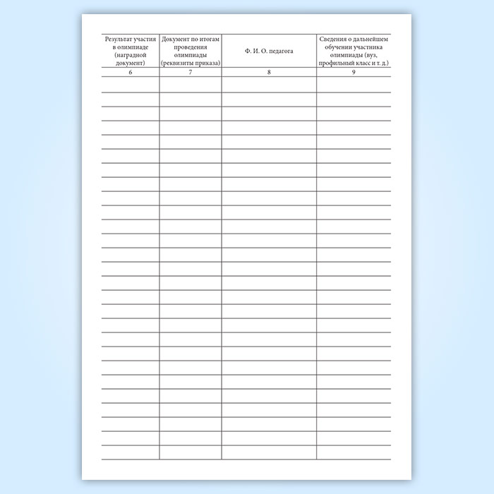 Журнал учета результатов предметных олимпиад обучающихся имеет графы: