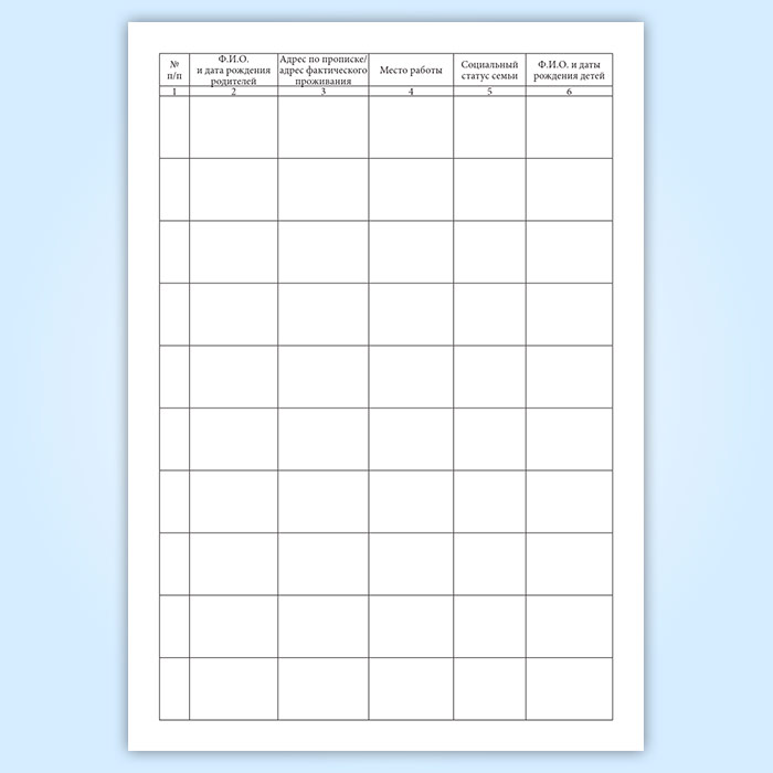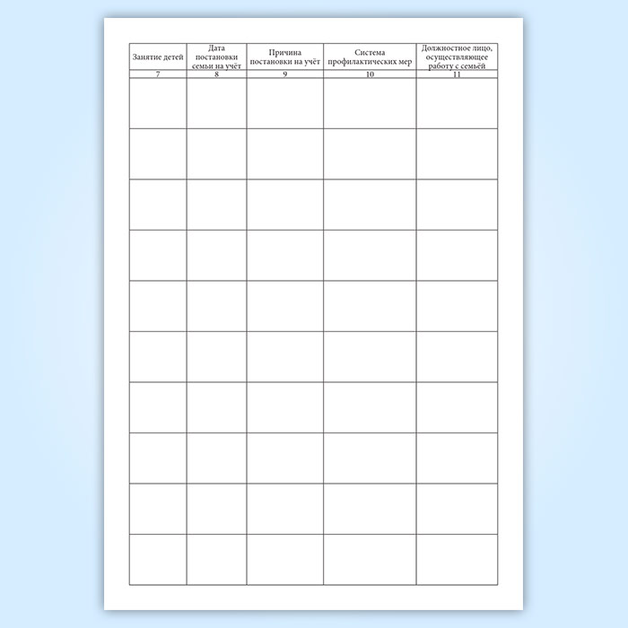 Журнал учета семей, находящихся в социально опасном положении имеет графы (столбцы):