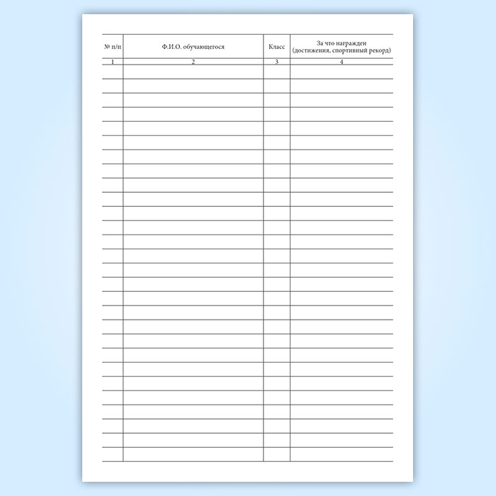 Книга учета достижений и спортивных рекордов общеобразовательной организации имеет графы:
