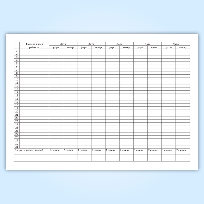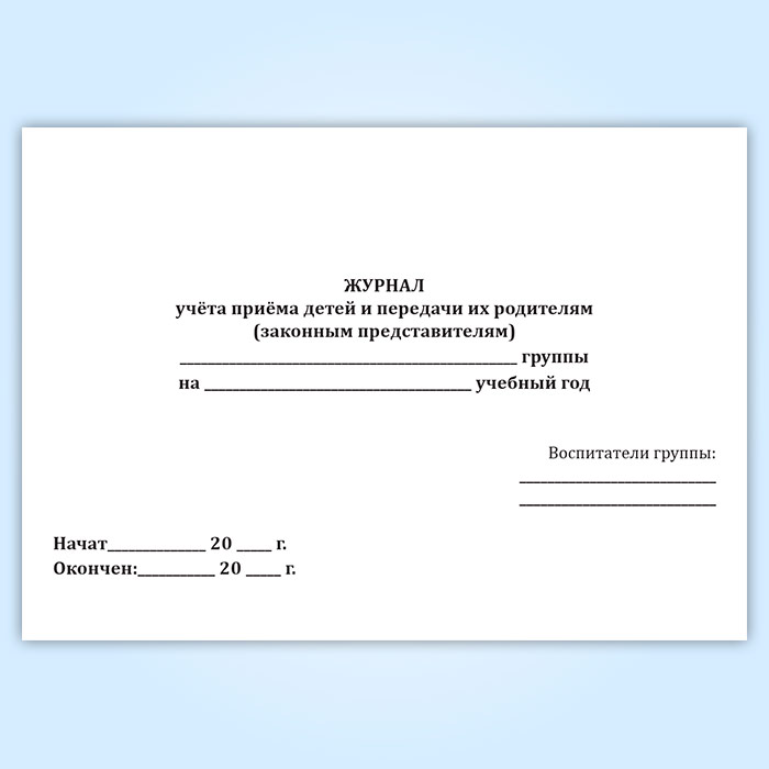 В целях обеспечения безопасности жизни и здоровья детей, посещающих ДОУ, а также для организованного ежедневного приема детей воспитателями и передачи их родителям (законным представителям) необходимо вести специальный журнал. При приеме ребенка в детский сад либо его передаче родителю воспитатель обеспечивает и контролирует, чтобы родитель расписался в журнале учета приема и передачи детей.