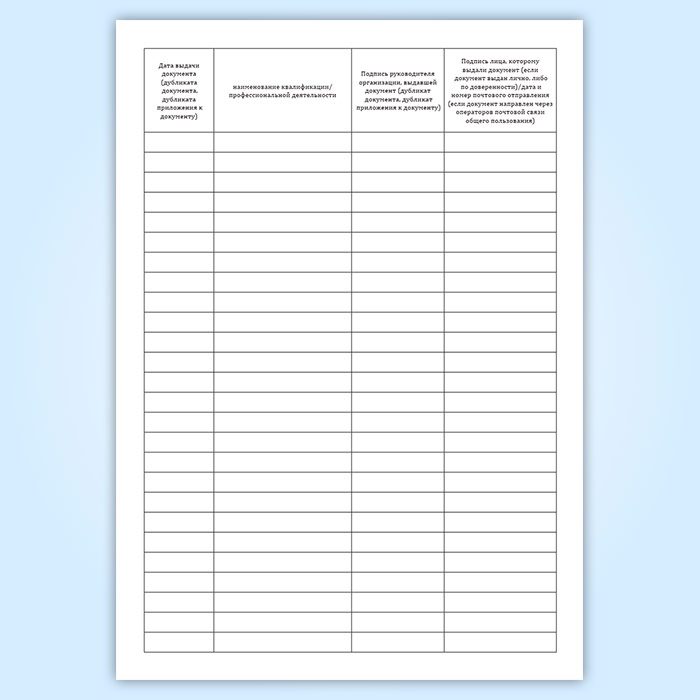 Графы книги регистрации выданных документов о профессии рабочего, должности служащего: