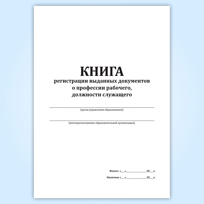 Книга регистрации выданных документов о профессии рабочего, должности служащего