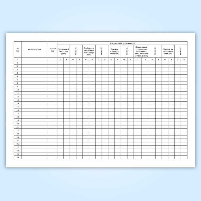 Журнал мониторинга физической подготовленности обучающихся содержит графы: