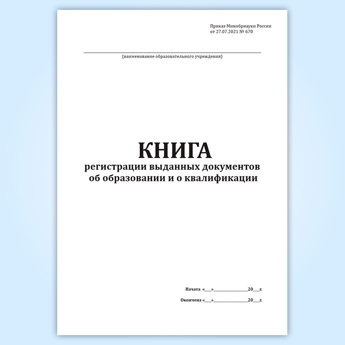 Книга регистрации выданных документов об образовании и о квалификации (Приказ Минобрнауки России от 27.07.2021 № 670)