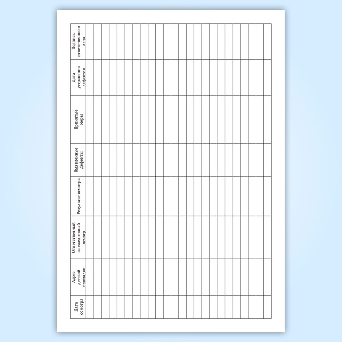 Журнал обхода детских игровых и спортивных площадок имеет графы: