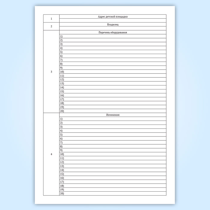 Журнал обхода детских игровых и спортивных площадок