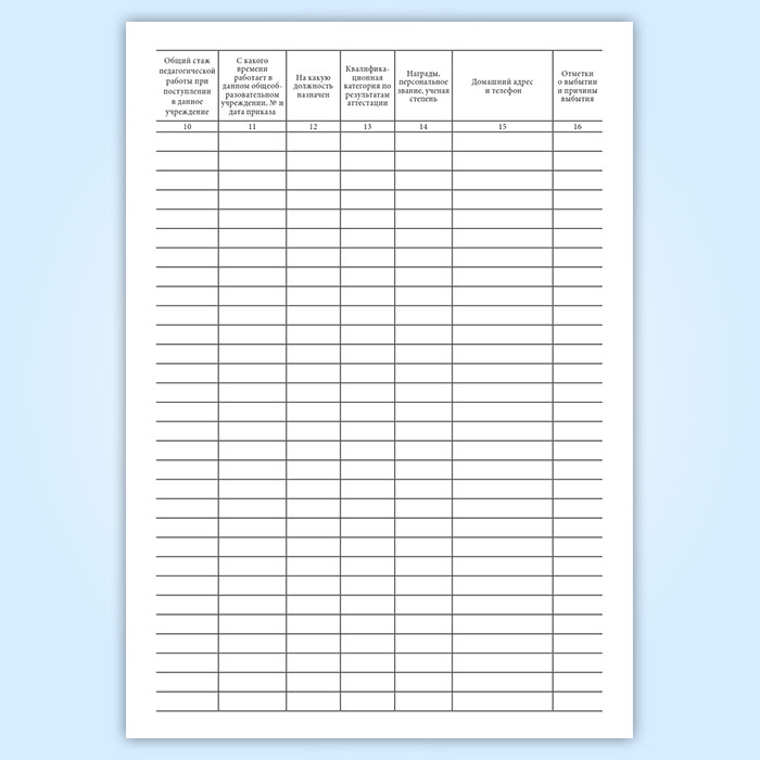 Книга учета личного состава работников общеобразовательного учреждения