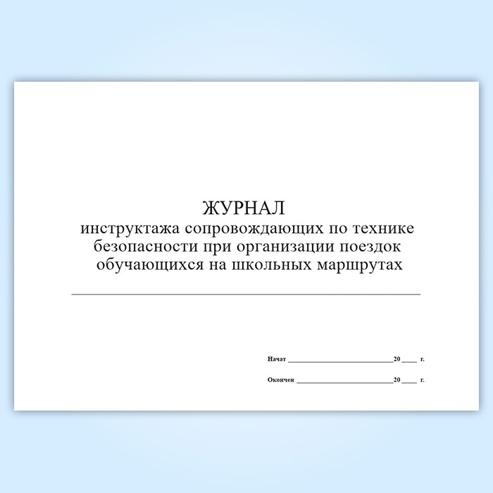 Форма журнала инструктажа сопровождающих по технике безопасности при организации поездок обучающихся на школьных маршрутах соответствует Приложению №12 к Методическим рекомендациям по организации перевозки обущающихся (воспитанников) в образовательные учреждения.