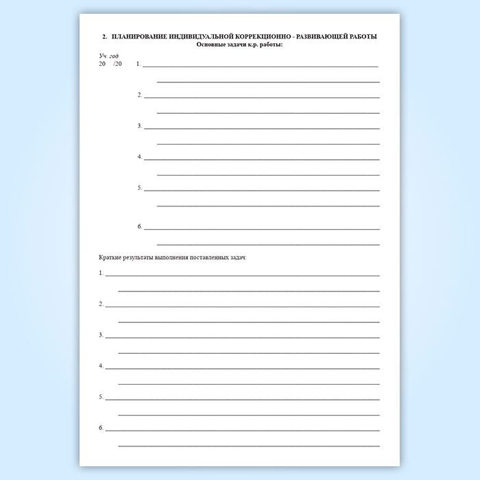 Дневник индивидуальной коррекционно-развивающей работы имеет 2 подраздела: