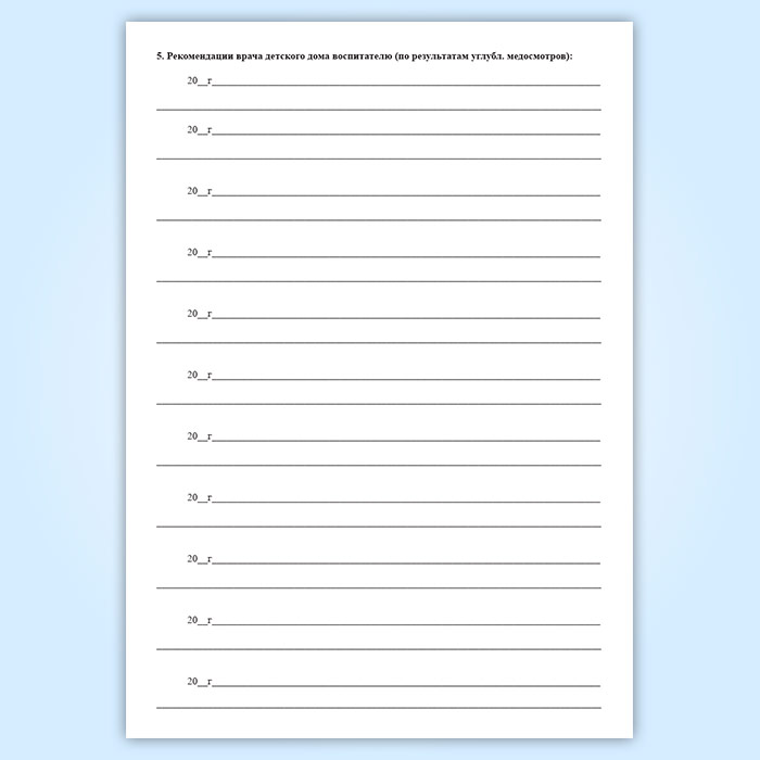 5. Рекомендации врача детского дома воспитателю (по результатам углубл. медосмотров):