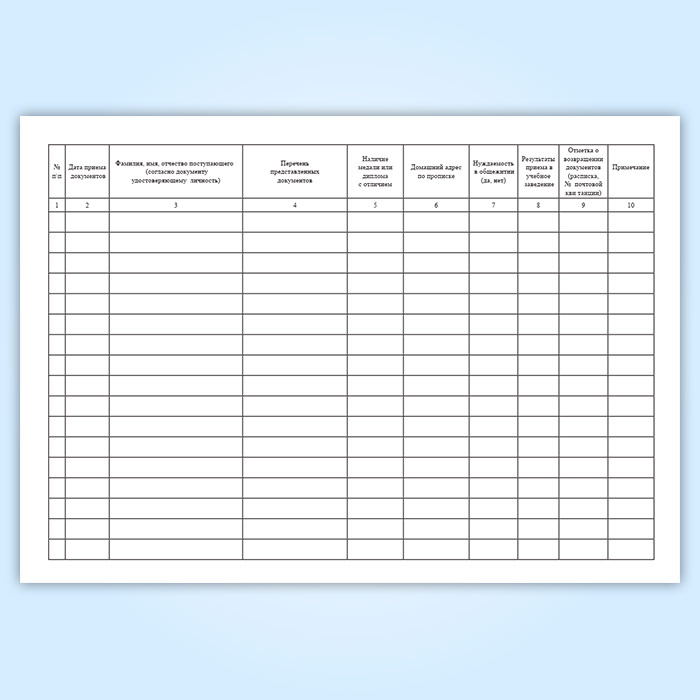 Журнал регистрации документов абитуриентов