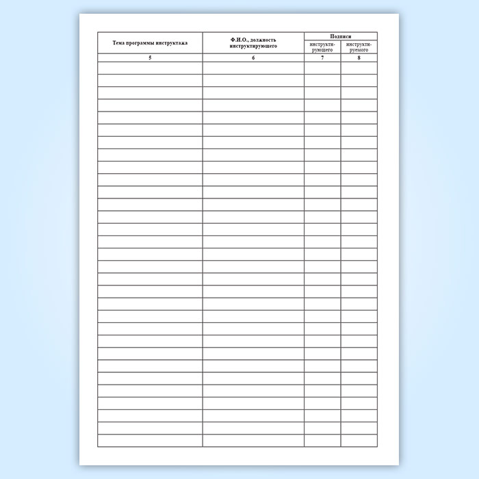 1.5 В графе 5 допускается одна общая запись фамилии и должности инструктора.