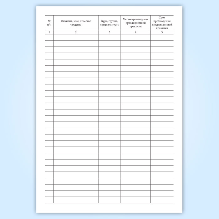 Журнал учета прохождения студентами преддипломной практики имеет графы: