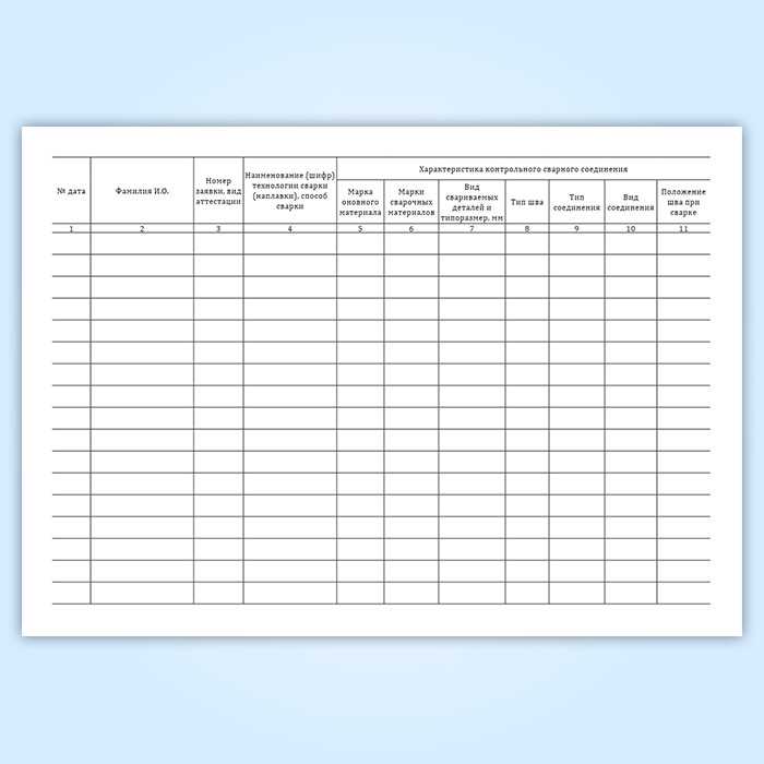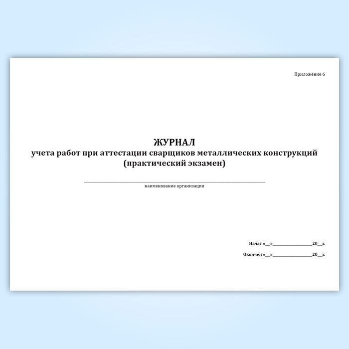 Журнал учета работ при аттестации сварщиков металлических конструкций (практический экзамен)