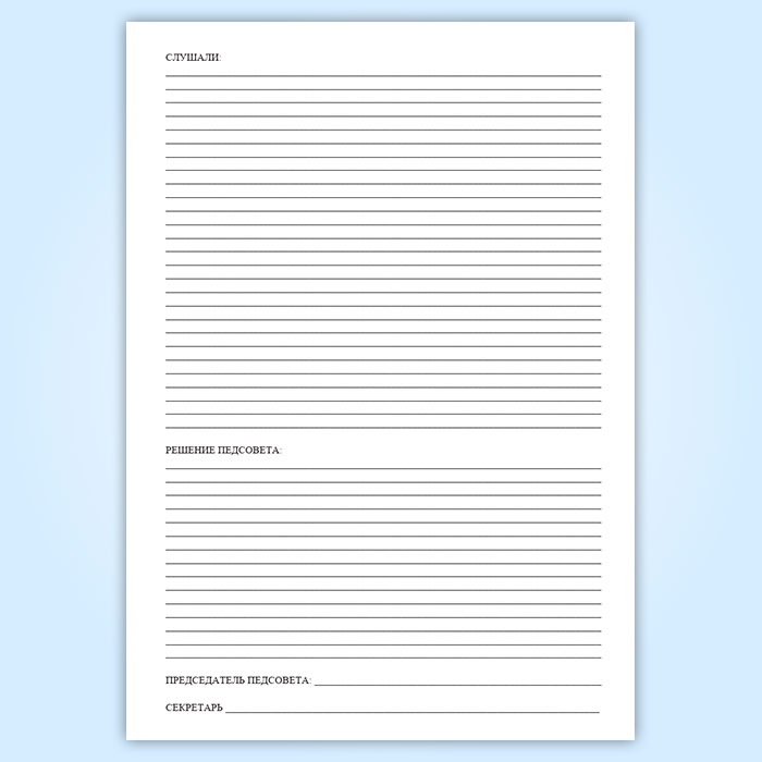 В Журнал педсовета вносятся основные сведения о заслушанных темах и принятых решениях на заседаниях педсовета.