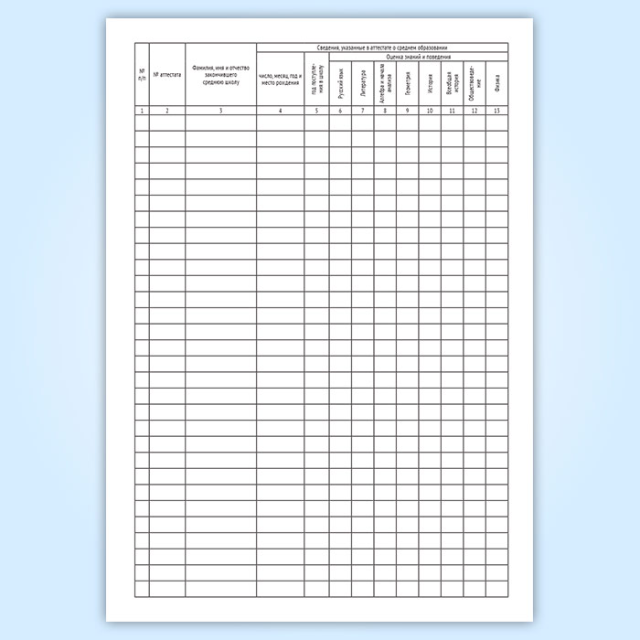Список выпускников текущего учебного года вносится в книгу в алфавитном порядке отдельно по каждому классу (со сквозной нумерацией), номера бланков - в возрастающем порядке.