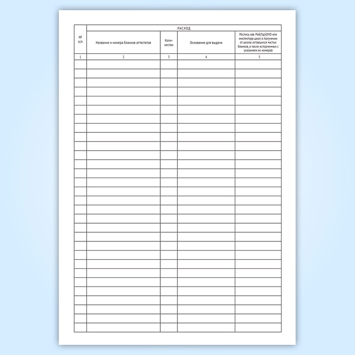5. Роспись зав. Рай(Гор)ОНО или инспектора школ о получении от школы оставшихся чистых бланков, а также испорченных с указанием их номеров