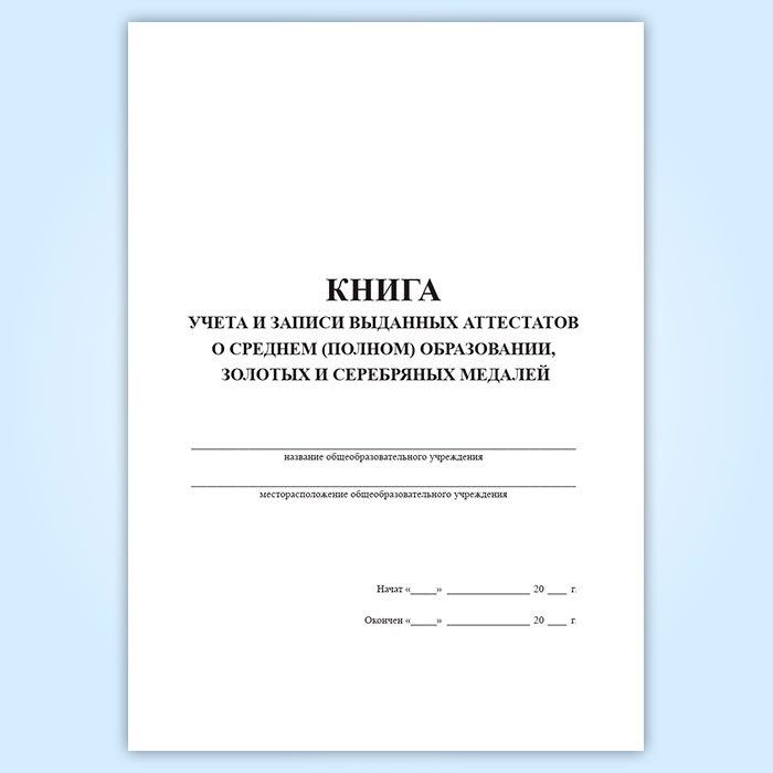 Книга учета и записи выданных аттестатов о среднем (полном) образовании, золотых и серебряных медалей