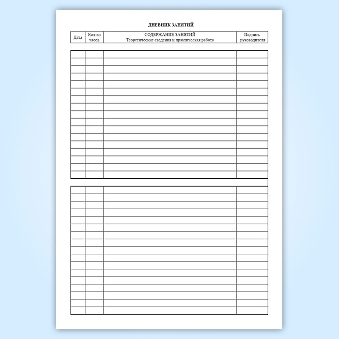 7. В разделе «Дневник занятий» записи должны в сжатой форме, но достаточно ясно отражать содержание очередного занятия, записи о продолжительности, подтвержденные личной подписью.