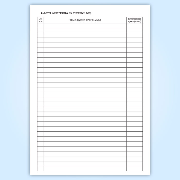 3. Раздел «Основные цели и задачи работы коллектива» заполняется до начала занятий коллектива.