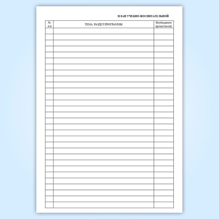 4. Раздел «План учебно-воспитательной работы» заполняется планами на учебный год и летнее время перед началом учебного года.